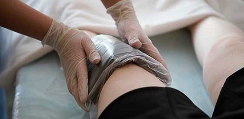 Лечение асептического бурсита предполагает прикладывание холодных или ледяных компрессов. Держать на колене их следует строго ограниченное время (не более 15-ти минут), иначе можно получить легкое обморожение. Нельзя прикладывать лед к непокрытой коже, предварительно его необходимо завернуть в полотенце.