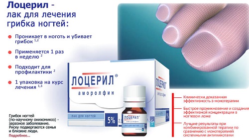 Лак от грибка Лоцерил применяют для лечения грибкового поражения, приобрести его можно в аптеке. В набор входят одноразовые тампоны и пилочка для обработки пластины. Благодаря наличию в составе аморолфина гидрохлорида, который мягко воздействует на ногтевую пластину, останавливая размножение микробов. Даже некоторое накопление данного вещества в организме не приносит существенного вреда.