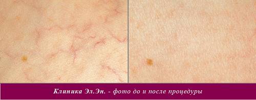 Лазерное удаление сосудистой сетки предполагает воздействие лазерным лучом на гемоглобин, который передает свою энергию стенке сосудов. Результатом служит удаление сосуда. Лазерное излучение безопасно для организма, однако может вызывать появление ожогов. Преимущественно используется лазерный свет желтого или зеленого оттенка, который, проникая под кожу, производит склеивание сосуда. Количество подобных процедур назначается врачом индивидуально исходя из степени заболевания. Бывает, что удаление сосуда происходит уже после первой процедуры, но может понадобиться и проведение 3-4 подобных мероприятий. Несмотря на прогрессивность метода, иногда сосуды могут оставаться устойчивыми к воздействию лазерного излучения.